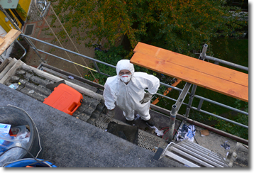 Versuchen Sie die Asbest-Entsorgung keinesfalls selbst. Ohne Schutzausrüstung und Fachkunde kann das Abreissen von asbesthaltigen Baustoffen Ihre Gesundheit schädigen.